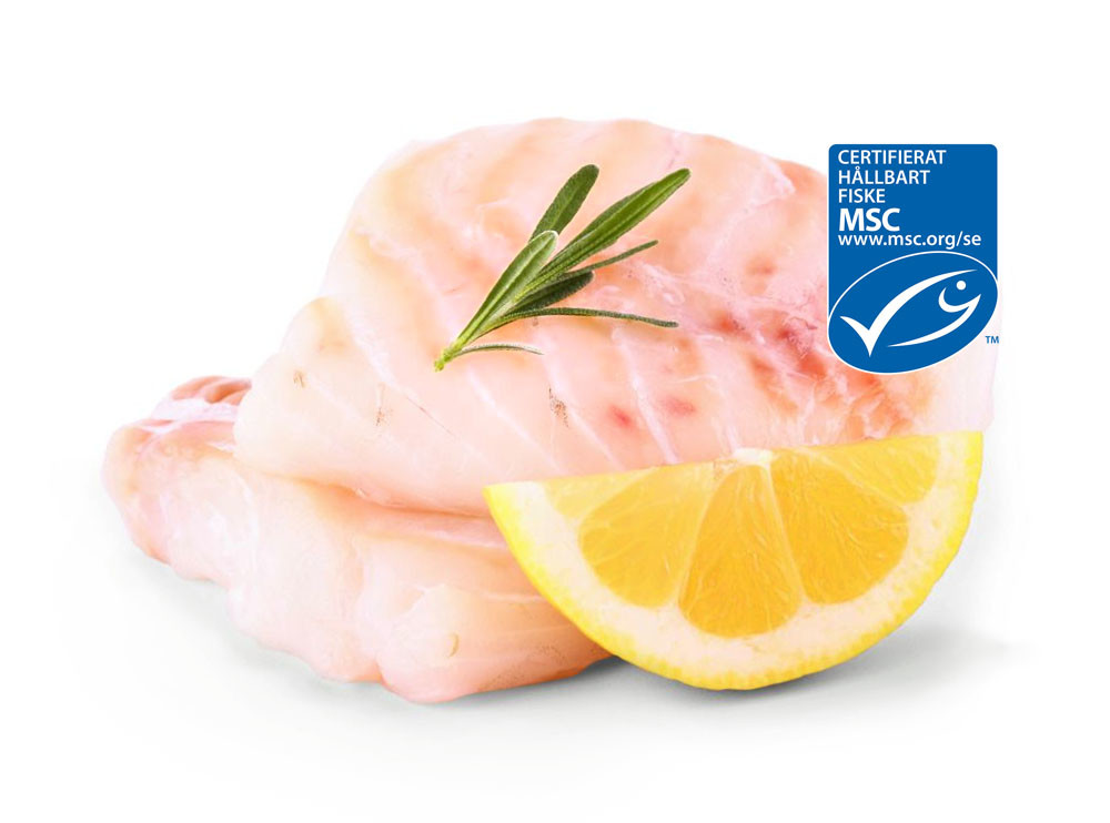 Fisk och skaldjur med denna märkning kommer från ett fiske som har blivit oberoende certifierat enligt MSC:s miljökrav för ett välskött och uthålligt fiske. www.msc.org/se